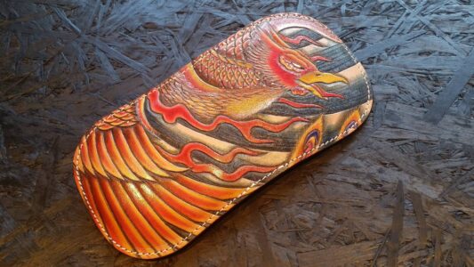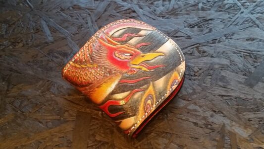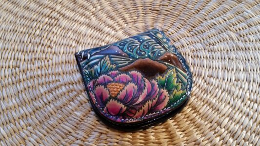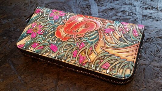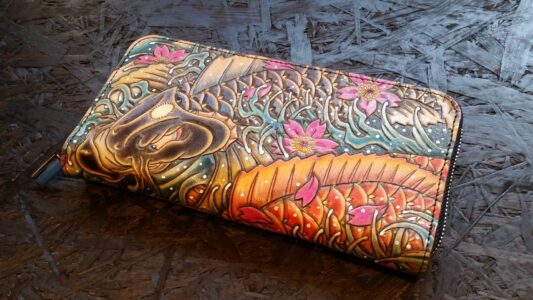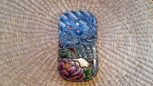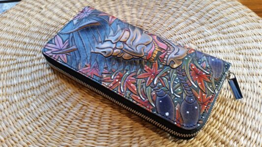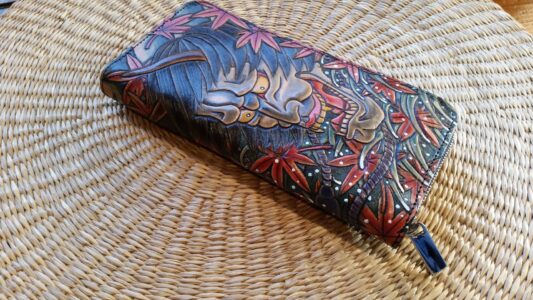 和柄革細工小物ブランド・もののふでは小銭入れ、長財布をメインに和柄の細かく見事な革彫刻を施した革細工小物をオーダー制作でご注文を承っております。