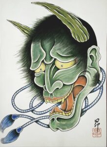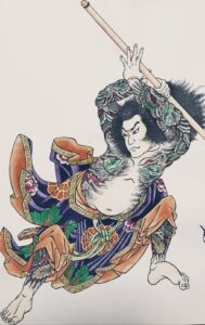 現代の映画やドラマでは、美術スタッフさん達が刺青を見よう見まねで描いています。刺青、特に和彫りの美しさとは、主題図柄と背景(風、雲、水流、波、岩)を額としボカシ等、調和の取れた日本絵の美しさを肌に表現したものが和彫りだと思うのです。