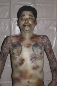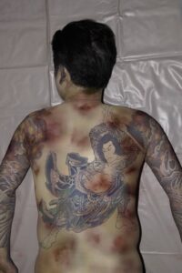 ヤクザ、暴力団、チンピラ等……刺青を見せるシーン等でフェイクタトゥーの美術協力で施術を行います。ワンポイント柄から背中一面、全身等、各撮影シーン等に合わせた刺青柄を描く事が可能です。