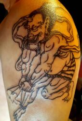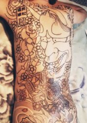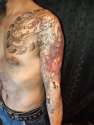 当店では、オリジナル和彫り刺青、洋彫りタトゥーやトライバル、民族紋様等の図柄、他の作品のカヴァーやお直し等々の施術依頼を承っております。