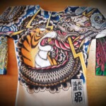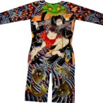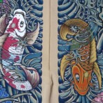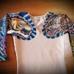 演劇舞台で役者様が着用する特殊舞台用衣装・刺青肉襦袢の特注制作を承っております。餅は餅屋ということわざはご存じだと思いますが、いくら上手に絵が描けたとしても、修行にて学ぶ刺青(和彫り絵)では絵の繋ぎ、額ブチ、見切り等々、刺青図柄を学んだ者には敵いません。つまり失敗が決して許されない刺青は見よう見まねで体に彫れないのと一緒で、刺青和彫り絵は、それを学んだ人でなければ刺青の美しい作品に仕上げる事は出来ないのです。当店で制作する刺青肉襦袢は和柄専門の刺青和彫り職人による絵付けで制作しますので本格的な和彫り刺青の肉襦袢を制作する事が可能です。