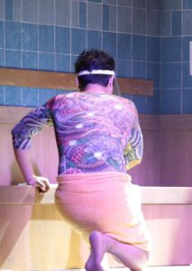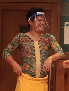 実力派お笑い芸人のバッドボーイズ佐田正樹さん出演の配信上映舞台【サウナ-マン ザ・ステージ~汗が涙なら問題ない~】での元ヤクザ役の佐田正樹さん着用衣装の刺青肉襦袢を制作、美術協力致しました。